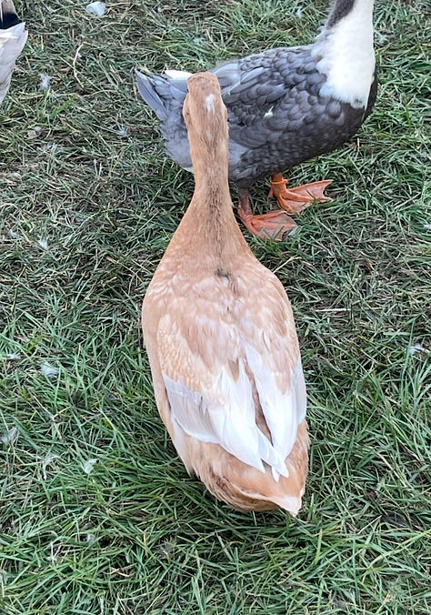 The third goal was to see if perhaps with time and maturity if the four Blue ducklings I hatched in the summer are actually some form of Blue Mallard instead of just being Blue Bibbed. Two were crested and two were not, and are pretty drakes, but not the color pattern I want to keep in my flock. I can wait a few more months to double check, but I really think they are Blue Bibbed and will stay the color and patterns they hatched with.